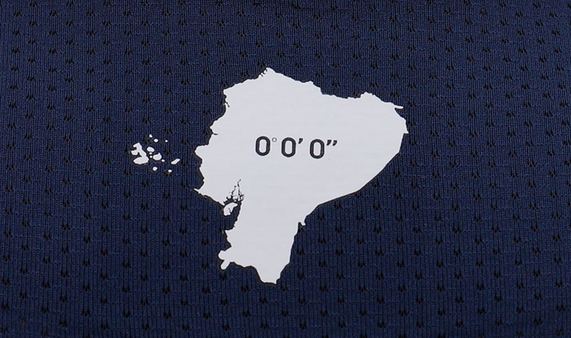 背面の首元には国土のシルエットと「“0° 0′ 0″」の文字をレタリングする。エクアドルは赤道直下の国だが、この3つのゼロは緯度0度0分0秒の「赤道の位置」を示すもの。ちなみにエクアドルは国名そのものが赤道に由来する。