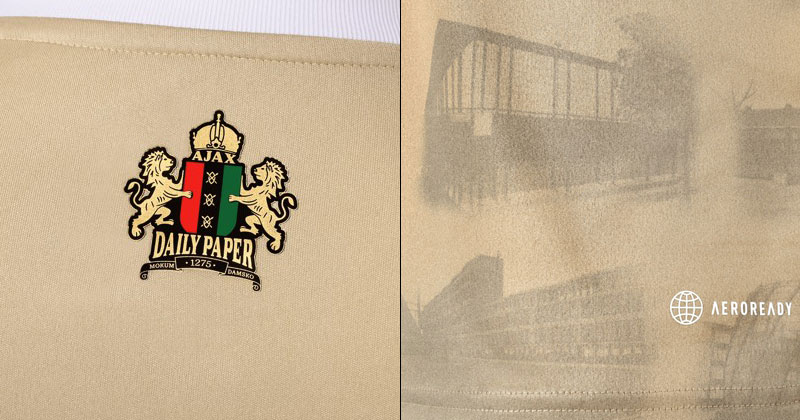 パンツはゴールド、ソックスはブラックをそれぞれ採用し、アムステルダムの旗や紋章の色で統一。シャツとパンツのエンブレム下には“Daily Paper”のブランド名をレタリングする。