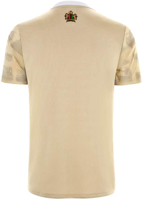 シャツはゴールドを基調とし、ラウンドネックに中央ストライプというデザイン。これはアヤックスのクラシックなホームキットをモチーフにしている。