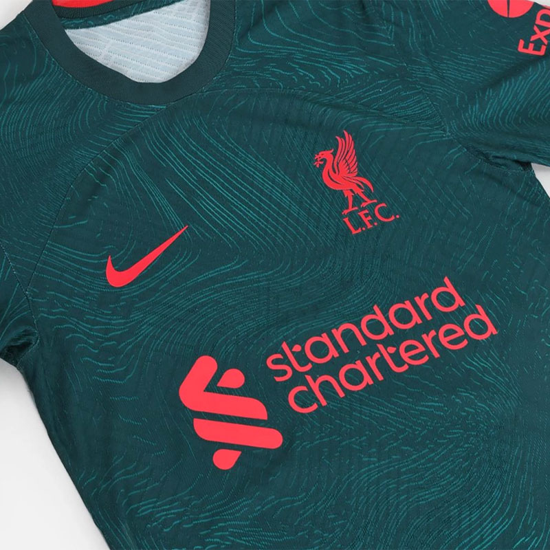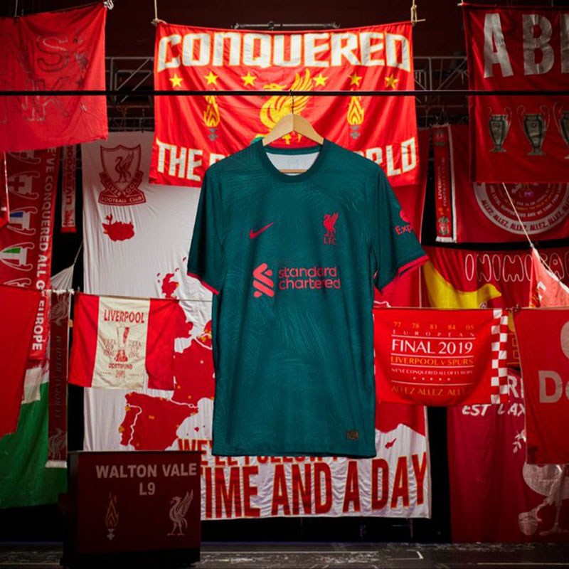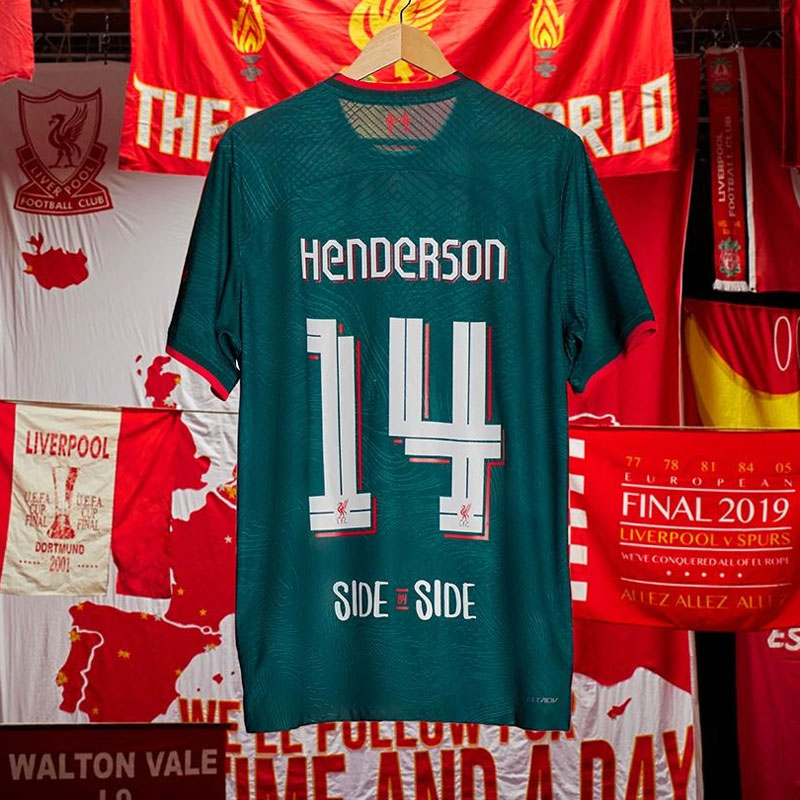 新サードキットは今季のCLでも使われるが、ユニフォームの発表と同時にカップ戦用のネームナンバーも公開。デザインはリヴァプールの街のストリートサイン(標識)をモチーフとしている。