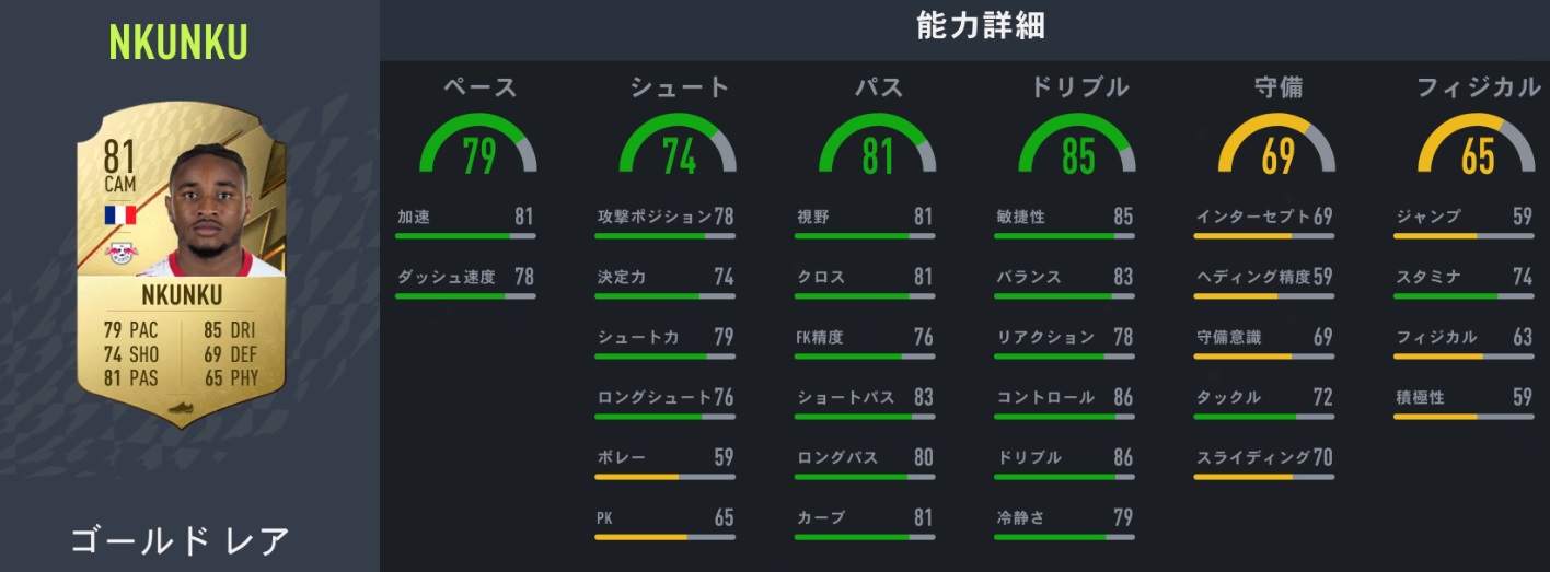 FIFA22での能力値:81