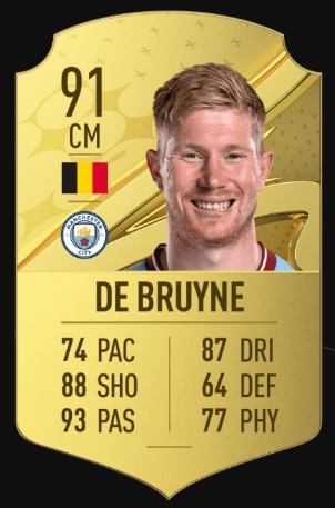 最も高い能力になったのは、マンチェスター・シティの攻撃を牽引するデブライネ。