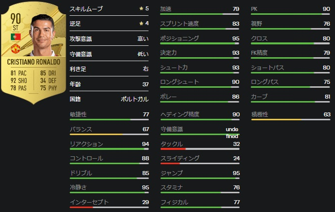FIFA23での能力値:90