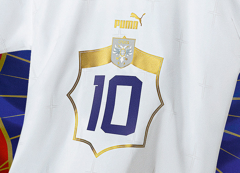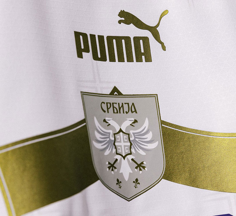 刺々しい形の胸のグラフィックは、1882年に成立したセルビア王国の国章を模ったもの。社会主義時代には廃止されていたものだが、現在では再び国章に制定されている。
