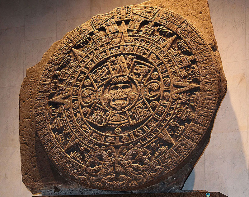 これが「太陽の石」。メキシコ国立人類学博物館に収蔵されている本物です。中央にユニと同じ顔がありますね。