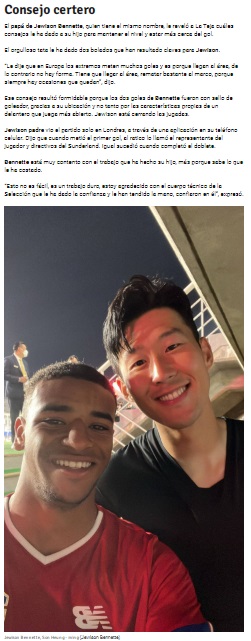 試合で対戦した韓国代表FWソン・フンミンとの2ショット!(画像は『La Teja』から)