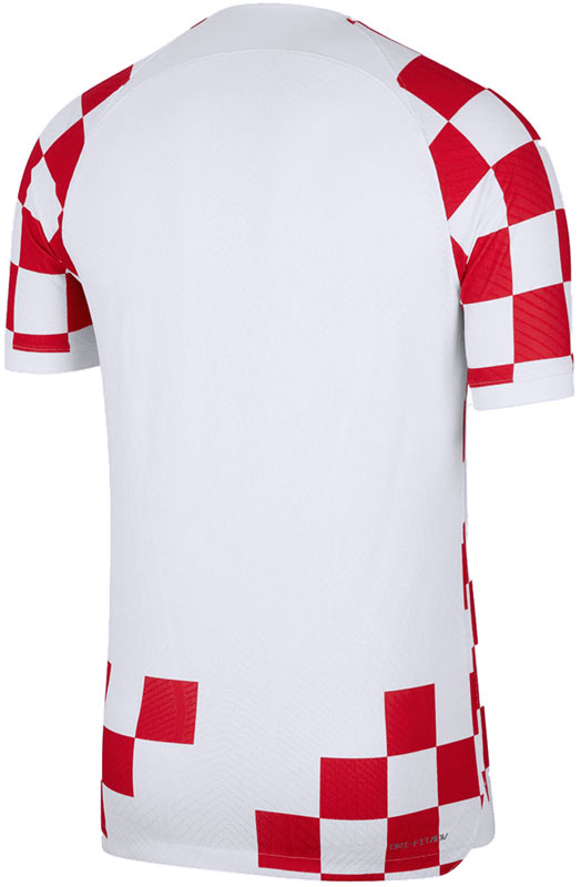 2022新ホームユニフォームのベースデザインは、民族の象徴であるレッドとホワイトのシャホヴニツァ(“チェス盤”を意味する市松模様)。胸のスウッシュ(Nikeロゴ)にブルーを配し、エンブレムやクロアチア国旗の3色で構成する。