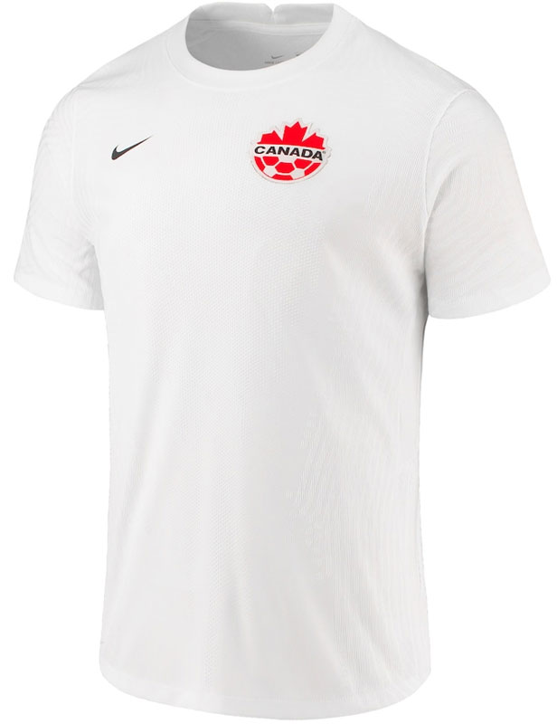 2022アウェイユニフォームも2021モデルを継続使用。ホワイトを基調としたデザインはホームと同じく国旗の色をモチーフとしたもので、この色はカナダの雪をイメージしたものだという。真っ白な中にカエデの葉の真っ赤なエンブレムが美しく映える。