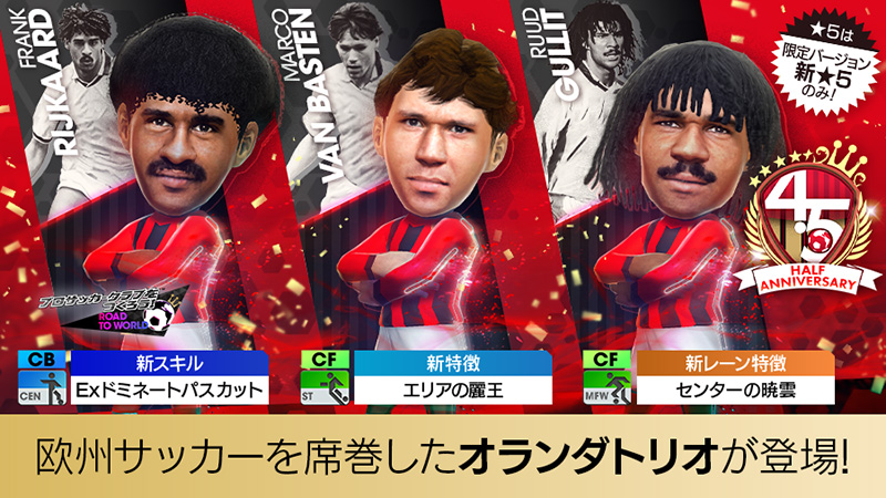 『プロサッカークラブをつくろう! ロード・トゥ・ワールド』イタリア強豪クラブのレジェンド「マルコ・ファン・バステン」「ルート・フリット」「フランク・ライカールト」「アレッサンドロ・ネスタ」などが登場する“4.5Half Anniversary LEGEND SCOUT”開催!