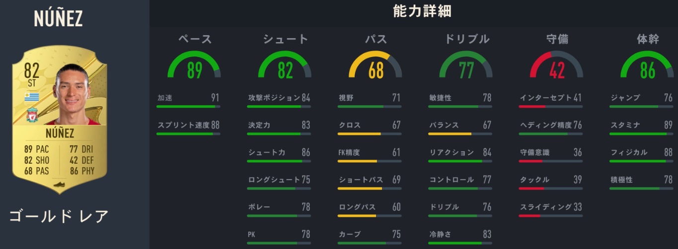 ダルウィン・ヌニェス:能力82