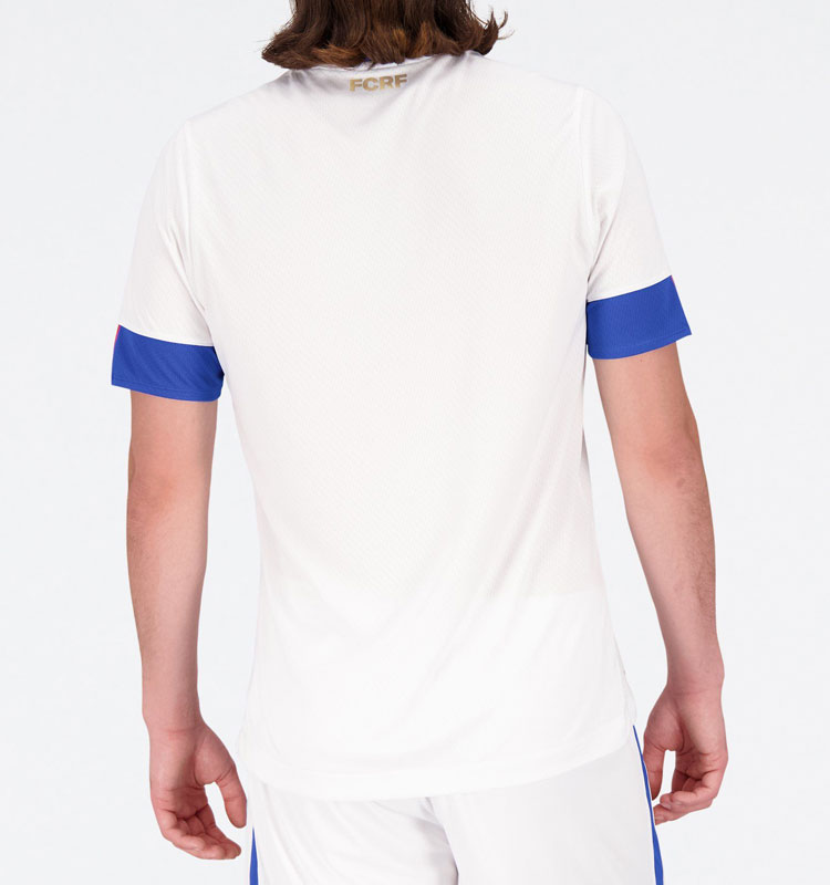 2022新アウェイユニフォームは、ホームキットの色違いデザイン。ホワイトをメインにブルーとレッドの差し色で、やはり国旗の3色で構成する。