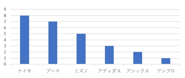まだ公式戦が残っているため負傷などによる入れ替えの可能性はあるが、このタイミングで26選手が着用しているスパイクのメーカーを調べてみた。