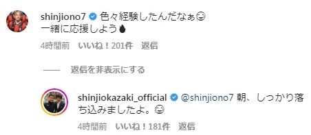 これに同じくW杯3大会に出場した小野伸二が反応。「色々経験したんだなぁ、一緒に応援しよう」とメッセージを送ると岡崎は「朝、しっかり落ち込みましたよ」と返答していた。