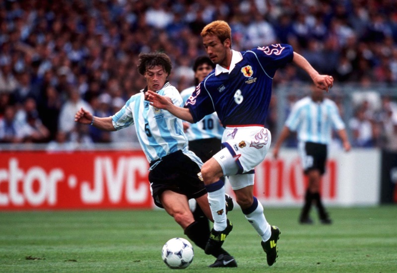 日本が世界に誇るヒデ。岡田武史監督のもとで攻撃の軸に抜擢されると、日本初のW杯で全3試合にフル出場した。