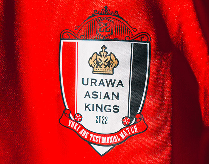 エンブレムデザインはレッズのそれをモチーフとしたもの。上部に阿部の背番号22を配し、下部には“YUKI ABE TESTIMONIAL MATCH”をリボンで装飾。