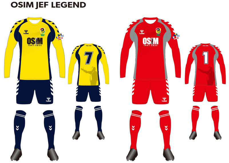 両レジェンドチームのユニフォームはこのような組み合せ。GKキットはジェフレジェンドがレッド、ジャパンレジェンドはグレーをそれぞれ採用となった。
