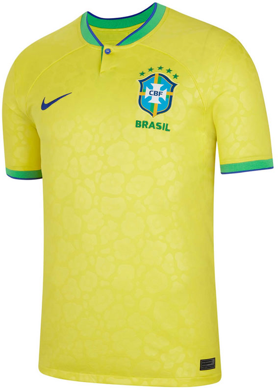 これまでのブラジルのユニフォームと大きく異なり、ホーム・アウェイどちらも驚きのアニマル柄。ジャガーの爪と美しさにインスパイアされたデザインだが、ブラジルのユニでは異色のキットとなった。古代南米でジャガーは神として信仰されていたというが、20年ぶりのW杯優勝に向けた“神頼み”のようにも思えるデザインである。