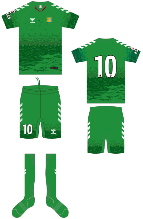 パンツとソックスも引き続きグリーンを基調とし、パンツにはシャツと同じように波を描く。