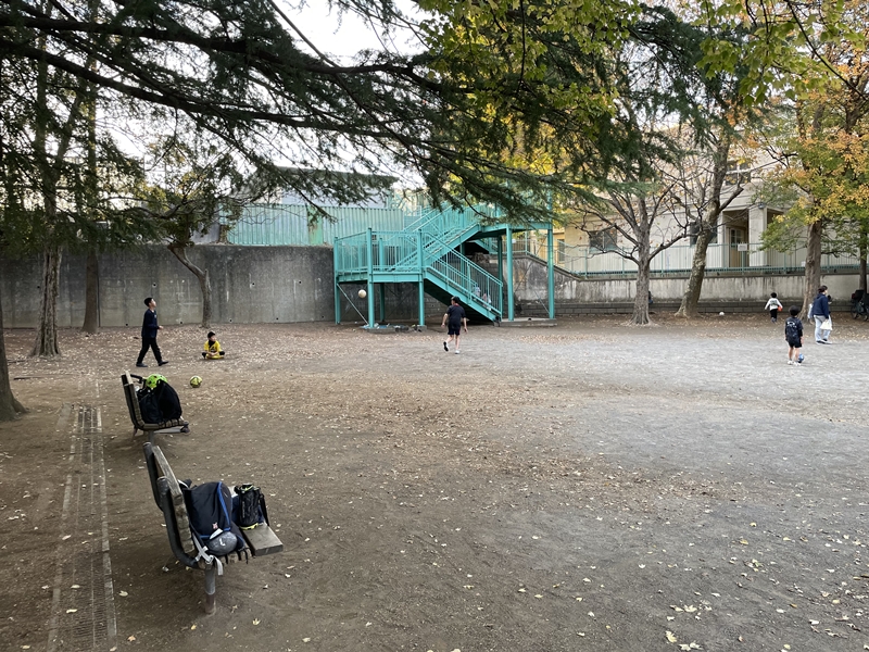 宮前平公園の特徴の一つが奥にある立派な壁だろう。すぐ隣に小学校のプールがあるためで、ボール遊びには格好の場所!この日もサッカー少年が壁との対話を楽しんでいた。三笘がつけた跡もどこかにあるかもしれない…。