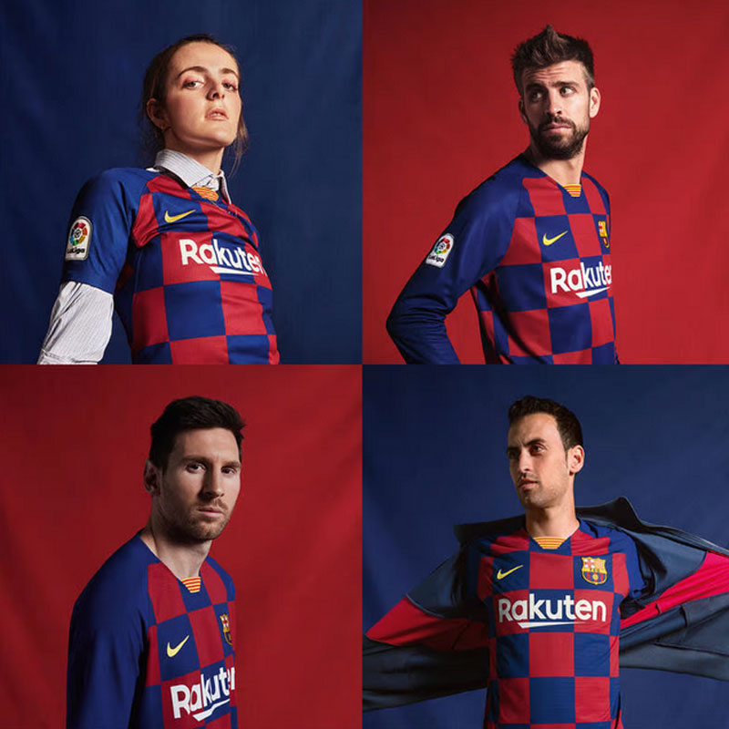 クラブ史上初のチェック柄を採用した衝撃のユニフォーム。これはバルセロナ市内にある「アシャンプラ地区」の建物にインスパイアされたもの。この地区はブロックごとに八角形の建物がきれいに並ぶ街並みが特徴で、それをチェック柄で表現している。