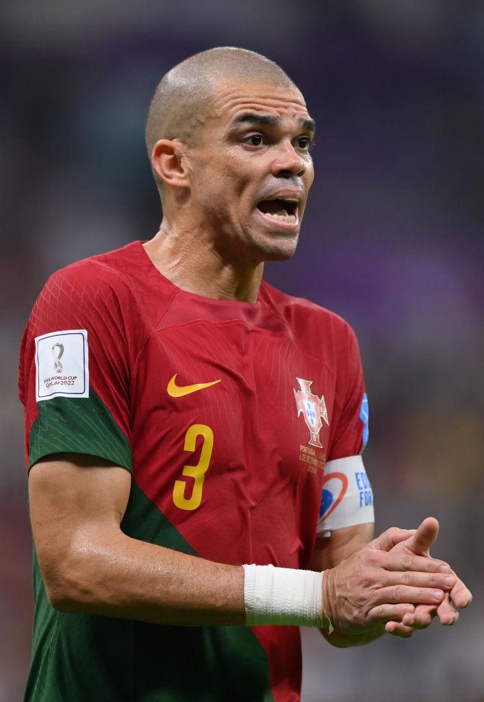 FIFAワールドカップ・ラウンド16のポルトガル代表対スペイン代表の試合でゴールを決めたペペ。