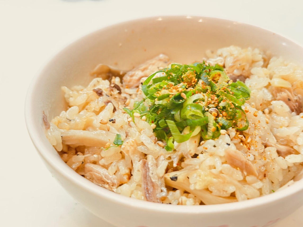 炊き込みご飯というと和風な印象であるがさっぱり感だけでなく、サバのオリーブオイル漬け、そしてニンニクを入れることによってイタリアの風が左サイドから吹いてくるような、絶妙な深みで胃袋を深くえぐってくる。