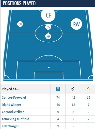 『Transfermarkt』で、これまでの起用ポジションを見てもこうなる。