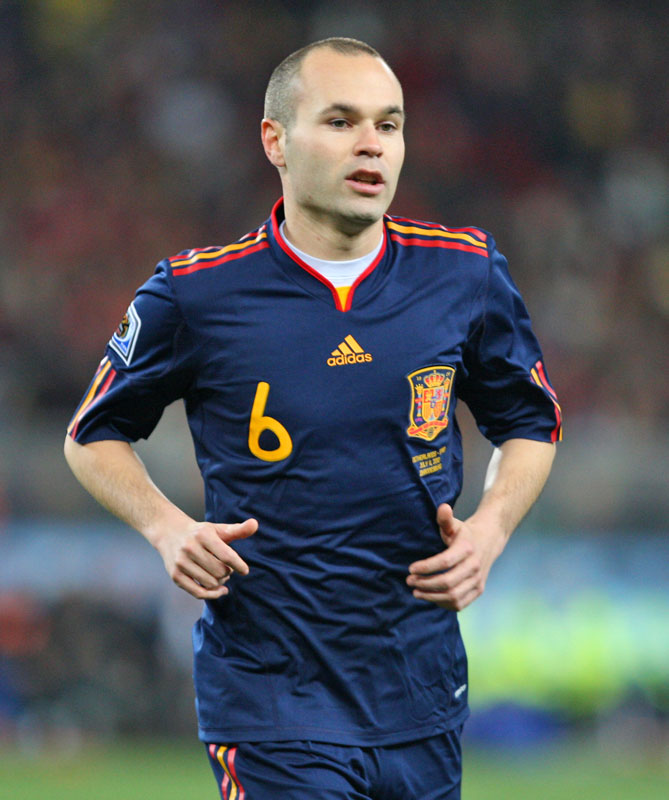 スペインが悲願のW初優勝を成し遂げた南アフリカ大会のユニフォーム。決勝戦ではアウェイキットを着用し、アンドレス・イニエスタのドラマティックな決勝ゴールでトロフィーを手中に収めた。このネイビーのユニはスペイン代表サポーターの間で永遠に語り継がれるであろう、伝説の一着である。