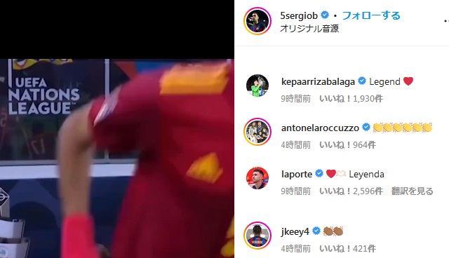 バルセロナでともにプレーしたリオネル・メッシの妻アントネッラ・ロクッソさんも拍手の絵文字を送っていた。