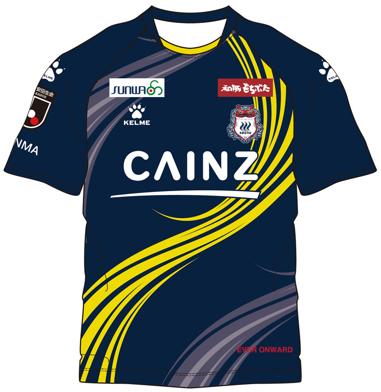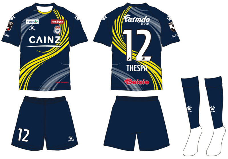 今回のデザインは群馬名物の「からっ風と雷」をモチーフに、チームの堅守速攻を体現するようなデザイン。伝統のネイビーを身にまとい、より鋭く流動的にピッチを支配する姿をイメージしている。