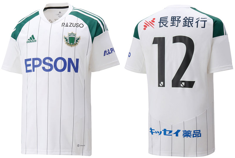 各部のスポンサーは、胸に「EPSON」、背中に「長野銀行」、背中裾に「キッセイ薬品」、左袖に「ALPICO」、パンツに「信濃毎日新聞社」。右鎖骨部分には育成サポート会員組織「RAZUSO(ラズーソ)」のロゴを掲出する。