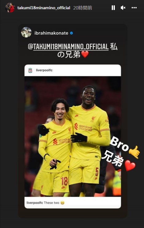 コナテは日本代表FW南野拓実がリヴァプールに所属していた当時に「兄弟愛」を誓った選手だ。
