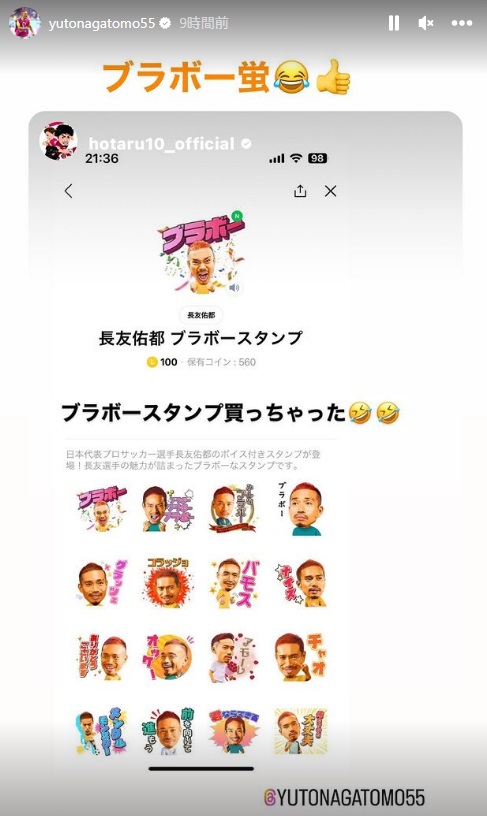 そうしたなか、LINEスタンプに長友のボイス好きスタンプが登場。早速購入していた選手がいたぞ!
