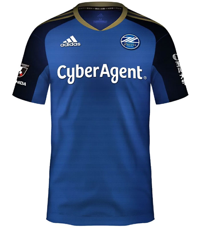 2023新ホームユニフォームはクラブカラーであるブルーを基調とし、輝きを放つゴールドのスリーストライプスで“町田ゼルビアを表現”したクールなデザイン。メインとなるロイヤルブルーで鋭さを、肩のネイビーで落ち着きを表している。