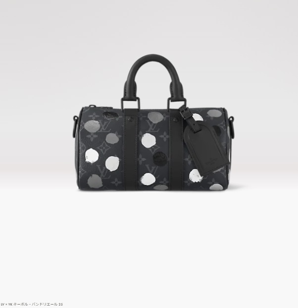 これは、ルイ・ヴィトンと日本人アーティストの草間彌生氏がコラボレーションした第2弾のアイテムのひとつ。ヴィトン定番の旅行用バッグをミニチュア化した「LV YK キーポル・バンドリエール 25」。