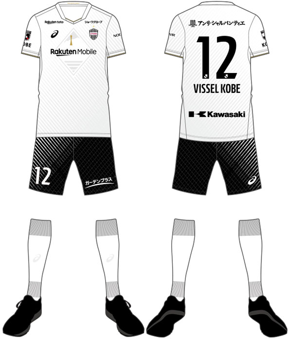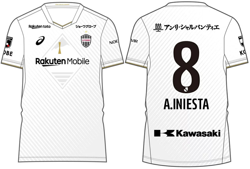 現時点での各部スポンサーは、胸に「Rakuten Mobile(楽天モバイル)」、背中上に「アンリ・シャルパンティエ」、背中下に「川崎重工業」、鎖骨右に「Rakuten toto」、鎖骨左に「ショーワグローブ」、左袖に「NOEVIR(ノエビア)」、パンツ前面に「デジアラホールディングス」。