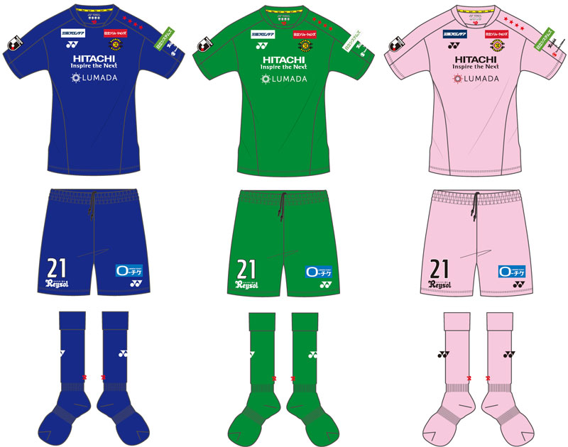 現時点での各部スポンサーは、胸に「HITACHI」、背中上に「Aflac(アフラック)」、背中下に「日立ビルシステム」、鎖骨右に「三協フロンティア」、鎖骨左に「日立ソリューションズ」、左袖に「日立システムズ」、パンツ前面に「ローチケ(ローソンチケット)」、パンツ背面に「日立ハイテク」。