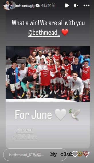 ベスというのは、アーセナルの女子チームに所属する女子イングランド代表FWベス・ミードのこと。彼女は最愛の母であるジューンさんを卵巣がんのために亡くしたばかり。