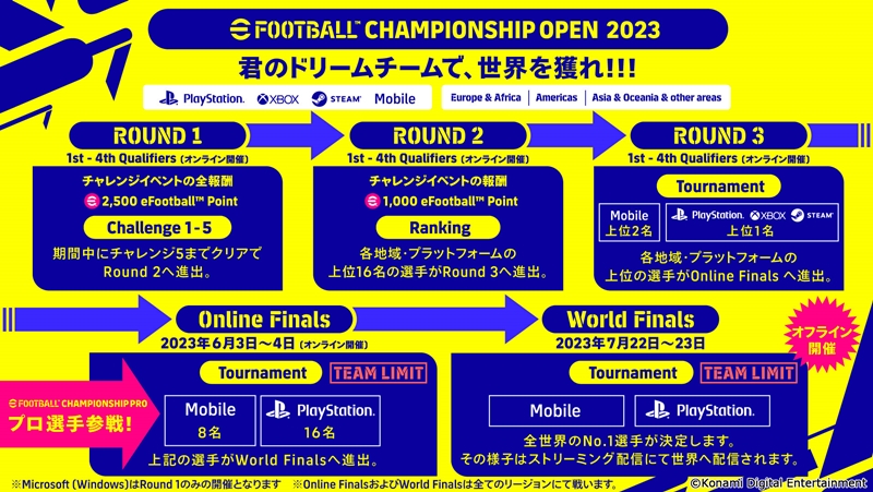 また、リアルサッカーに続き、今度は「eFootball」で世界の頂点を決める戦いが始まる。すべてのユーザーが参加できる公式eスポーツ大会「eFootball Championship Open 2023」を1月30日から開催予定。