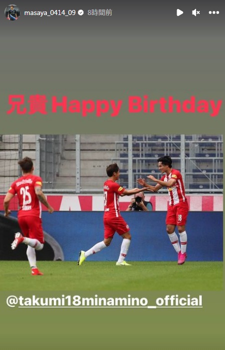 レッドブル・ザルツブルクでともにプレーした奥川雅也も「兄貴、Happy Birthday」と祝福。