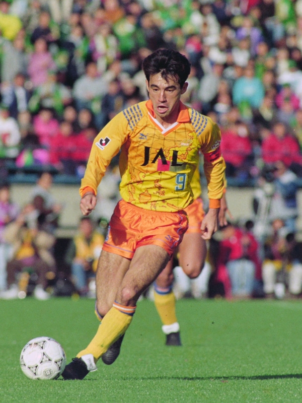 筑波大学から日産自動車へ加入し主力として活躍。Jリーグ創設とともに地元の清水エスパルスへ移ると、日本代表で1993年に「ドーハの悲劇」を経験した(※写真の後列右から3人目)。