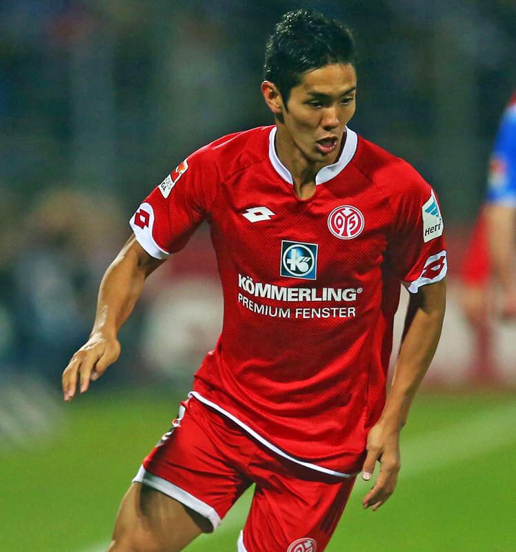 レスターに加入の岡崎慎司と入れ替わる形で、2015年にFC東京からマインツへ移籍。リーグ戦は20試合7得点と上々の結果を残したシーズンだった。ユニフォームは控え目のスタンドカラー(立ち襟)が上品で、赤と白の全体的な配色バランスも良いデザイン。