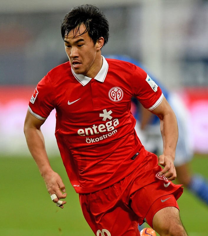マインツでの2シーズン目に着用したホームキット。岡崎はこのユニを着た14-15シーズンのブンデスリーガで、リーグ戦32試合12得点を記録。2季連続の2桁得点を達成した。品の良い襟付きデザインで、襟と袖口の赤いストライプがさり気なくお洒落だ。