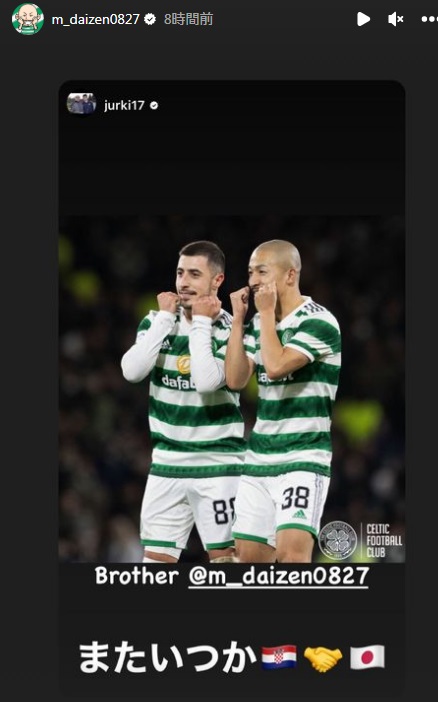 そのユラノヴィッチは前田に「兄弟」とお別れメッセージを送ると、前田も「またいつか」というコメントとクロアチアと日本が握手する絵文字もつけて返信していた。