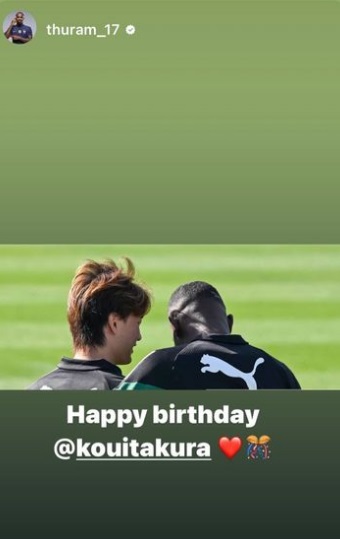 久保建英は「滉くん、お誕生日おめでとう」と祝福したほか、ボルシアMGのチームメイトであるフランス代表FWマルクス・テュラムからも祝福メッセージが送られている。