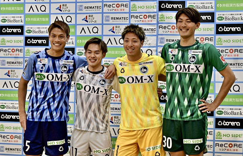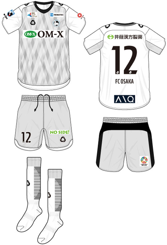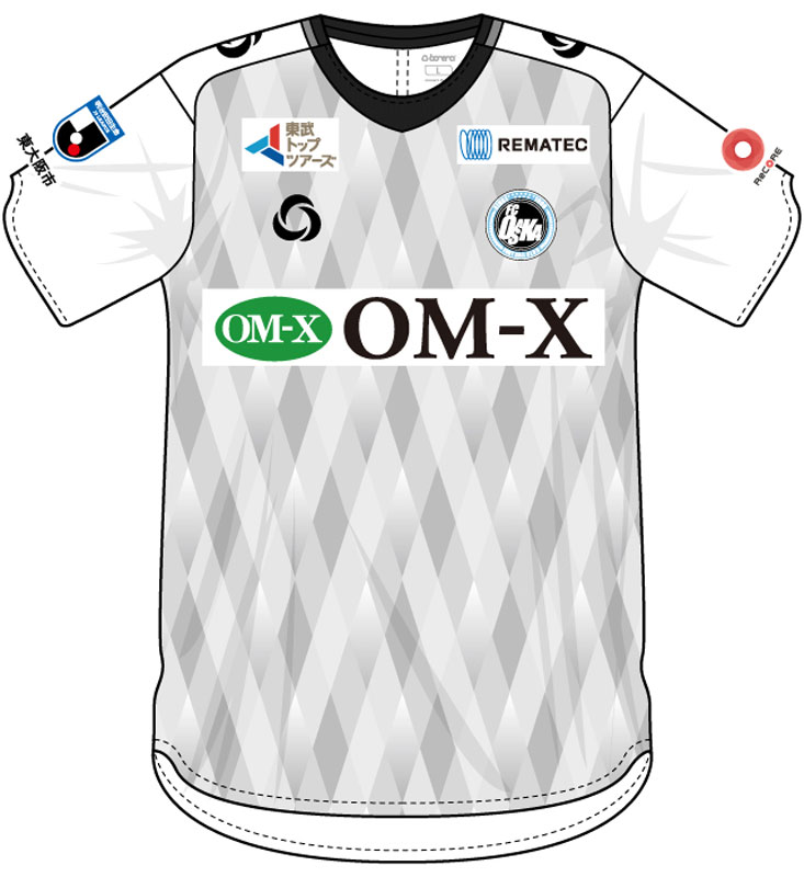 各部スポンサーは、胸に「OM-X(バイオバンク)」、背中上に「井藤漢方製薬」、背中下に「AIQ(アイキュー)」、鎖骨右に「東武トップツアーズ」、鎖骨左に「REMATEC」、左袖に「ReCORE鍼灸接骨院」、パンツ前面に「NO SIDE!」。