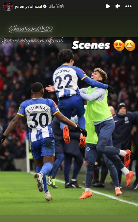 また、三笘と抱きつく写真もポストしており、これはエストゥピニャンも引用していた。