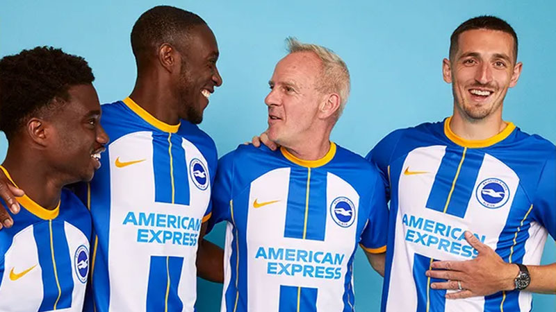 22-23シーズンの新ユニ発表段階では、街のレジェンドでDJ/ミュージシャンのFatboy Slim(下段右から2人目)が着ていても最高にかっこいいとは言い切れなかった。だが、最近の三笘の活躍に“見え方”が変わってきたユニフォームである。