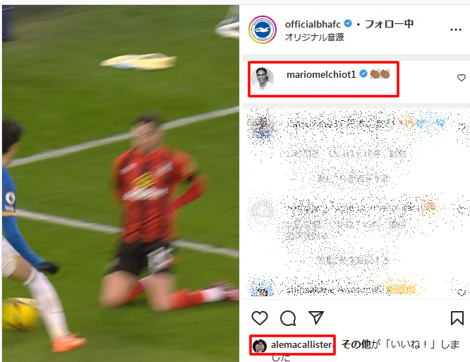また、ブライトンのチームメイトでアルゼンチン代表のワールドカップメンバーでもあるアレクシス・マカリステルもいいねをしていたぞ。