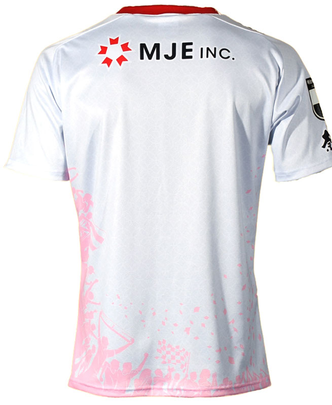 2023新アウェイユニフォームは引き続きホワイトを基調に、レッドの差し色でサポーターのグラフィックを彩る。背面にピンクを配する点も2022モデルと同じスタイルだ。